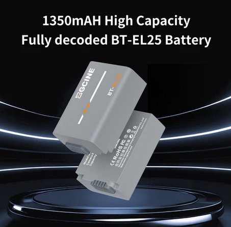 ZGCINE BT-EL25 je plne dekódovaná náhradná batéria s kapacitou 1280 mAh (7,7 V) od iného výrobcu pre fotoaparáty Nikon Z30, Z50 a Zfc, ktorá zodpovedá originálnej batérii EN-EL25 veľkosťou a výkonom – bez varovaní, plná komunikácia s fotoaparátom – a zároveň podporuje ultrarýchle nabíjanie (plné nabitie za ~2 hodiny s nabíjačkami ZGCINE PS/PC) a disponuje prémiovou 8-vrstvovou bezpečnostnou ochranou.