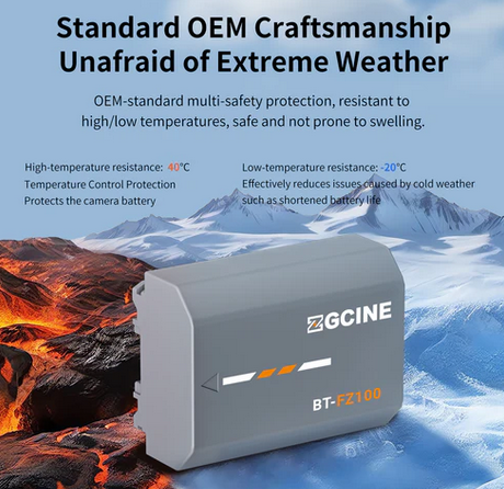 BT-FZ100 je profesionálna lítium-iónová náhradná batéria s kapacitou 2600 mAh, navrhnutá špeciálne pre systém Sony NP-FZ100. Vďaka úplnému dekódovaniu dokonale komunikuje s telom fotoaparátu, zobrazuje presný zostávajúci výkon a umožňuje nabíjanie vo fotoaparáte bez varovaní alebo obmedzení. Je vyrobená z najkvalitnejších lítium-iónových článkov a disponuje pokročilým 8-vrstvovým ochranným systémom (pred preťažením, nadmerným prúdom, skratom, prehriatím atď.), poskytuje stabilný výstup 7,2 V a zvýšenú bezpečnosť pre dlhšie fotografovanie. V kombinácii s nabíjacími puzdrami radu ZGCINE PS alebo nabíjačkami radu PC podporuje vysokorýchlostné nabíjanie a dosahuje 100 % kapacitu za približne 2,5 hodiny, čo je výrazne rýchlejšie ako štandardné nabíjanie originálnymi nabíjačkami Sony.
