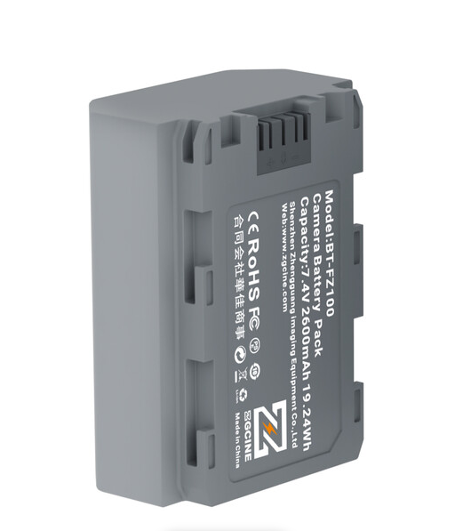 ZGCINE NP-FZ100 je lítium-iónová batéria s kapacitou 2600 mAh kompatibilná s fotoaparátmi Sony a1, a6600, a6700, a7 II/III/IV, a7C/II, a7CR, a7R III/IV/V, a7S III, a9 II, FX3, FX30 a ZV-E1, ktorá poskytuje výstup 7,2 V v kompaktnom formáte 1,8 x 1,7 x 0,5" s hmotnosťou len 2,9 oz, s dobou nabíjania 2,5 hodiny a bez environmentálneho tesnenia.