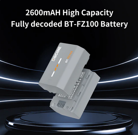 BT-FZ100 je plne dekódovaná vysokokapacitná 2600 mAh (7,2 V) náhradná batéria od iného výrobcu pre fotoaparáty Sony, ktorá funguje rovnako ako originálna batéria NP-FZ100 – bez vyskakujúcich okien, s plnou komunikáciou s fotoaparátom a s rovnakými fyzickými rozmermi – a navyše ponúka podporu rýchleho nabíjania (plné nabitie za ~2,5 hodiny s nabíjačkami ZGCINE PS/PC) a prémiovú 8-vrstvovú bezpečnostnú ochranu.