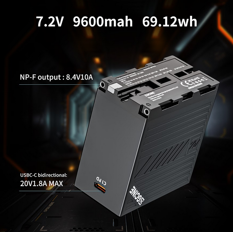 ZGCINE BT-NPF970 je kompaktná lítium-iónová batéria radu L s kapacitou 9600 mAh (69,12 Wh) s rýchlym nabíjaním PD až do 36 W, výstupmi D-TAP (8,4 V/3 A) a NPF, monitorovaním napätia, výkonu a teploty v reálnom čase na OLED displeji a komplexnou bezpečnostnou ochranou – ideálna na napájanie profesionálnych videozariadení, monitorov a osvetlenia.