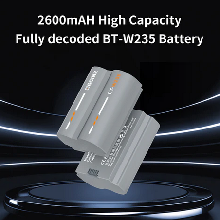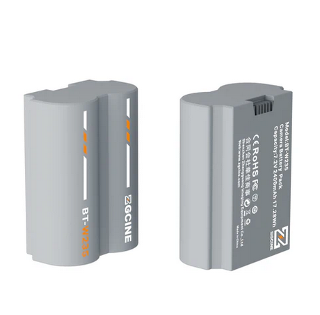 ZGCINE BT-W235 je plne dekódovaná náhradná batéria s kapacitou 2400 mAh (7,4 V) od iného výrobcu pre fotoaparáty Fujifilm, ktorá zodpovedá originálnej batérii NP-W235 veľkosťou a výkonom – bez varovaní, plná komunikácia s fotoaparátom – a zároveň ponúka rýchle nabíjanie (plné nabitie za ~2 hodiny s nabíjačkami ZGCINE…