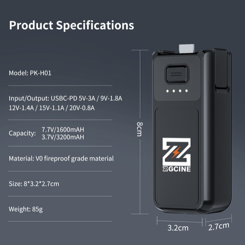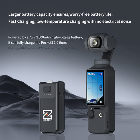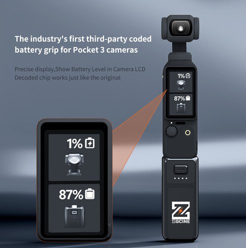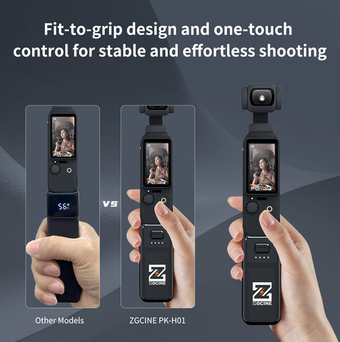 Batériový grip ZGCINE PK-H01 je prvý batériový grip od tretej strany navrhnutý pre DJI Osmo Pocket 3. Je kompaktný a prenosný, poskytuje dlhšiu výdrž batérie, rýchle nabíjanie a pohodlný prenos dát priamo do vášho počítača.