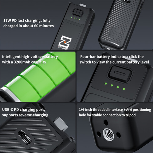 Batériový grip ZGCINE PK-H01 je vysoko výkonné príslušenstvo pre kamery DJI Osmo Pocket 3, ktoré ponúka inteligentnú vysokonapäťovú batériu s kapacitou 3200 mAh pre bezproblémové fotografovanie. Jeho kompaktný a ľahký dizajn uľahčuje prenášanie, zatiaľ čo rýchle nabíjanie PD s výkonom 17 W umožňuje úplné nabitie batériového gripu za približne 60 minút. Grip podporuje nabíjanie pri nízkej teplote s minimálnym elektrickým šumom, reverzné nabíjanie cez USB-C PD a je vybavený štvorstupňovým indikátorom batérie pre monitorovanie v reálnom čase. Vďaka 1/4-palcovému závitovému rozhraniu a polohovacím otvorom Arri zabezpečuje stabilné pripojenie k statívom. Okrem toho umožňuje priamy prenos dát do počítačov, aby ste mali pohodlný prístup k súborom na pamäťovej karte.