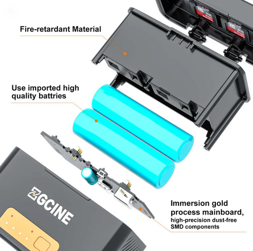 Nabíjacie puzdro na batérie GoPro ZGCINE (PS-G10 MINI Kit 2) je prenosné a odolné nabíjacie riešenie, ktoré je vytvorené na to, aby udržalo batérie GoPro napájané na cestách. Toto nabíjacie puzdro s robustnou konštrukciou z ABS účinne nabíja dve batérie GoPro súčasne a zároveň ponúka ďalší výstup USB-C pre iné zariadenia. Priložené batérie 901 poskytujú spoľahlivé záložné napájanie, vďaka čomu je toto zariadenie nevyhnutným príslušenstvom pre používateľov akčných kamier.
