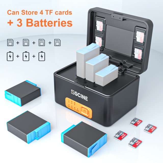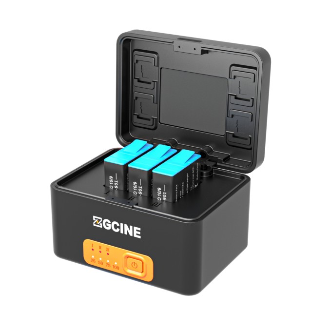 Udržujte batérie GoPro nabité a pripravené s nabíjacím puzdrom ZGCINE GoPro Battery Charging Case. Toto kompaktné a vysokokapacitné nabíjacie puzdro je vybavené vstavanou batériou s kapacitou 10 400 mAh, ktorá vám umožní nabíjať až tri batérie GoPro série 901 alebo 801 kedykoľvek a kdekoľvek - bezpotreby externého zdroja energie.