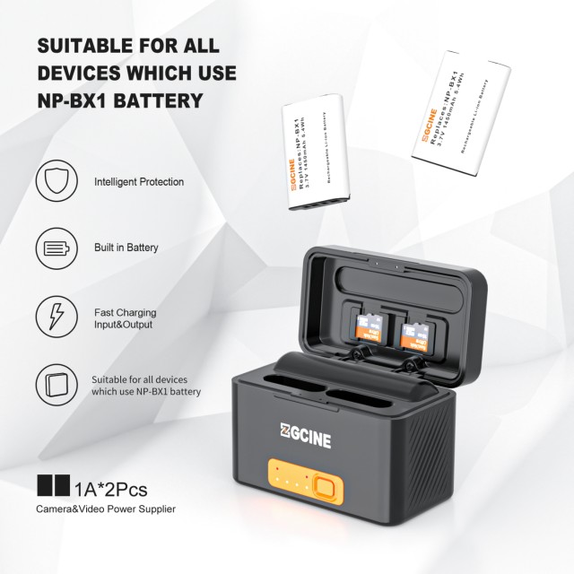 Nabíjacie puzdro ZGCINE Sony BX1 je prenosná dvojslotová nabíjačka so zabudovanou 5600mAh batériou na rýchle nabíjanie a pohodlné skladovanie batérií NP-BX1. Podporuje 20W vstup/výstup USB-C PD pre efektívne dodávanie energie.
