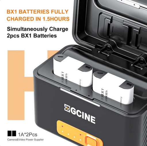 Nabíjacie puzdro ZGCINE SONY BX1 (PS-BX1 Kit2) sa dodáva s dvoma batériami NP-BX1 a ponúka prenosné riešenie na nabíjanie zariadení Sony s rýchlym nabíjaním a efektívnym skladovaním.