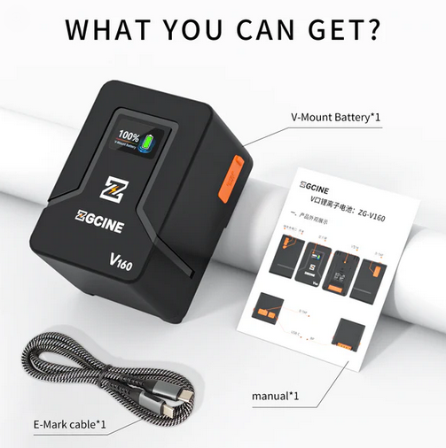Batéria ZGCINE V-Mount 16,8 V 160 WH poskytuje vysokokapacitné, rýchle nabíjanie so vstupom/výstupom USB-C PD a autentickými batériovými článkami Samsung. Ideálna pre náročné zariadenia na výrobu videa.