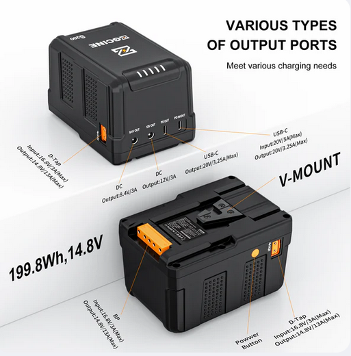 Batéria ZGCINE 200Wh V-Mount je všestranný a vysoko výkonný zdroj energie určený pre filmárov, kameramanov a tvorcov obsahu. Vďaka veľkej kapacite 200Wh poskytuje predĺženú dobu prevádzky pre rôzne zariadenia vrátane kamier, monitorov, LED svetiel a ďalších.