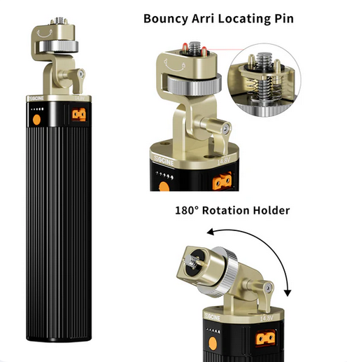 Batériový grip ZGCINE ZG-H90Pro je navrhnutý tak, aby poskytoval spoľahlivé a efektívne napájanie fotoaparátov a príslušenstva. Vďaka odrazovému polohovaciemu čapu Arri a držiaku otočnému o 180° zabezpečuje bezpečné upevnenie a flexibilné polohovanie. Grip podporuje vstup/výstup USB-C PD na rýchle nabíjanie a obsahuje výstup D-Tap 14,8 V na ďalšie možnosti napájania. Jeho univerzálny konektor pre svetelný stojan zvyšuje kompatibilitu s rôznymi nastaveniami. Svetelný indikátor nabíjania poskytuje stav napájania v reálnom čase, vďaka čomu je nevyhnutným príslušenstvom pre profesionálnych kameramanov.