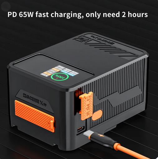 Batéria ZGCINE X99 V-Mount nanovo definuje riešenia napájania pre filmárov a tvorcov obsahu vďaka možnostiam detekcie v reálnom čase na všetkých portoch vrátane portov D-Tap a BP. Je vybavená 1,3-palcovou obrazovkou IPS a používatelia môžu v reálnom čase sledovať prúd, napätie, celkovú energiu, zostávajúci čas a teplotu. Dva nezávislé výstupy USB-C PD zabezpečujú stabilné napájanie bez zníženia rýchlosti, zatiaľ čo jeho 100W PD rýchle nabíjanie umožňuje plné nabitie len za 1,5 hodiny. X99 má protišmykový dizajn s elegantným skleneným panelom pre odolnosť a estetiku. Vďaka viacerým možnostiam výstupu je kompatibilný s videokamerami, monitormi, LED svetlami, smartfónmi a počítačmi.