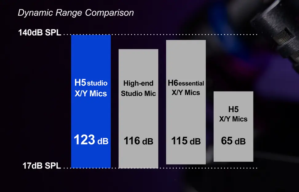 H5studio zachytáva až šesť stôp (štyri izostopy plus stereo mix) so vzorkovacou frekvenciou až 192 kHz.